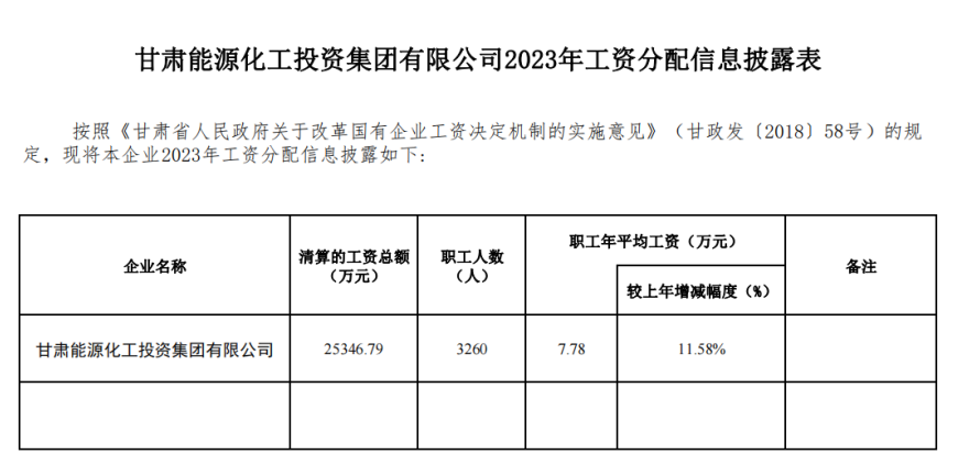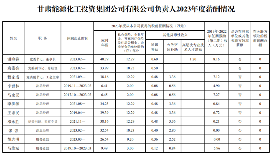 甘肃能源化工投资集团公司有限公司认真人2023年度薪酬情形