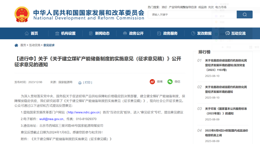 12ÔÂ6ÈÕ£¬¹ú¼Ò·¢¸ÄίÐû²¼¡¶¹ØÓÚ½¨Éèú¿ó²úÄÜ´¢±¸ÖƶȵÄʵÑéÒâ¼û£¨Õ÷ÇóÒâ¼û¸å£©¡·£¬ÒÔϼò³Æ¡¶Òâ¼û¸å¡·¡£