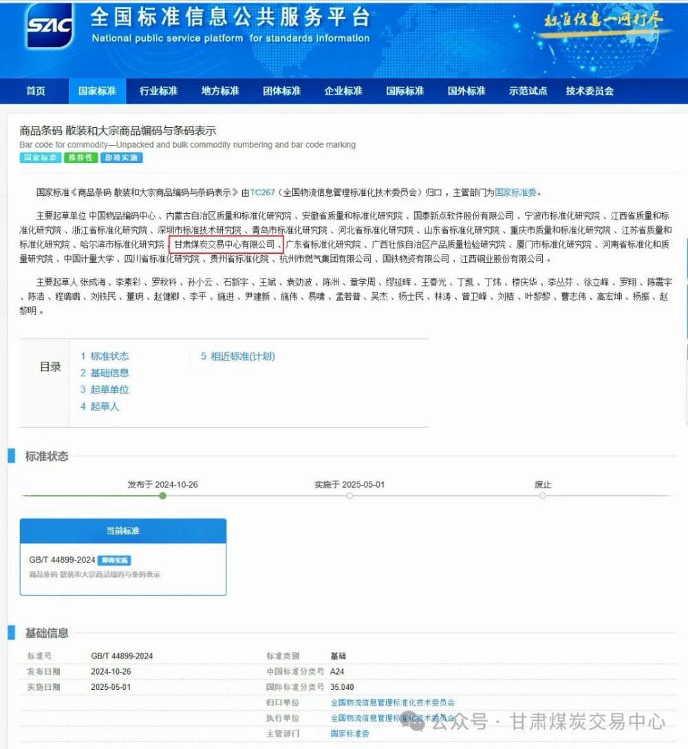 甘肃煤炭生意中心作为此次国家标准的起草单位之一,在深度加入标准制订事情中,认真总结吸收天下煤炭线上生意的有益做法,细密团结甘肃煤炭生意中心线上平台建设运行现实,为《商品条码 散装和大宗商品编码与条码体现》标准制订提供了科学性、适用性和前瞻性的意见和建议,并被标准制订机构接纳。接下来,甘肃煤炭生意中心将充分使用这一标准,一直优化企业采购供应链管理事情,加速推动企业数字标准化历程,一直提升企业标准化立异运用能力,为增进企业以致行业加速培育和生长新质生产力,实现高质量生长施展起劲作用。