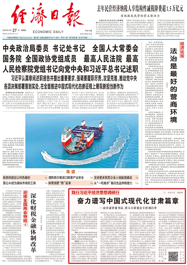 胡昌升:2024年是甘肃生长史上具有里程碑意义的一年。我们深入学习贯彻习近平总书记历次视察甘肃主要讲话主要指示精神,切记嘱托、感恩奋进,推动全省各领域事情周全提升、整体前进,交出了一份实打实的生长答卷。2024年甘肃省地区生产总值、规模以上工业增添值、收支口总值、全体住民人均可支配收入等8项主要经济指标增速居天下前3位,经济运行逆势而进、向上向好、量质齐升。
