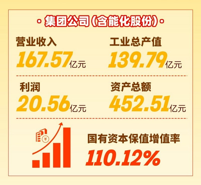 Èý¡¢Ë¢ÐÂÉú³¤»îÁ¦ÏÔÖøÌáÉý¡£Ãª¶¨¡°Èý¸öÏÔ×ÅЧ¹û¡±Ä¿µÄ£¬ÉîÈ뿪չ¹úÆóË¢ÐÂÈýÄêÐж¯£¬Íê³É7¸ö·½Ãæ60ÏîË¢ÐÂʹÃü¡£É¡°ÈýÏîÖÆ¶È¡±Ë¢Ð£¬Íê³É×ܲ¿ºÍ¸÷×Ó¹«Ë¾¶¨±à¶¨¸Ú¶¨Ô±ÊÂÇ飬¼¯ÍŹ«Ë¾×ܲ¿»ú¹¹ÓÉ11¸öÓÅ»¯Îª7¸ö¡¢¹ÜÀíÖ°Ô±¾«¼õΪ51ÈË£¬¼¨Ð§Ð½³êÕ¼±È´ï50%ÒÔÉÏ£¬ÐÂÆ¸ÓùÜÀíÖ°Ô±¾ºÕùÉϸÚ98%ÒÔÉÏ¡£Æô¶¯¼¯ÍŹ«Ë¾Ë¢ÐÂÉÌáÉýÐж¯£¬Öƶ©ÊµÑ鼯»®£¬Ã÷È·9¸ö·½Ãæ42ÏîʹÃü£¬¸÷ÏîÊÂÇéʵÏÖÓÅÒìÆð²½¡£Ê©Õ¹¼¯ÍŹ«Ë¾ÔÚ½¨ÉèÐÂÐÍÄÜÔ´»¯¹¤ÏÖ´ú¹¤ÒµÏµÍ³¡¢¹¹½¨ÐÂÉú³¤ÃûÌÃÖеĿƼ¼Á¢Òì¡¢¹¤ÒµÉú³¤¡¢ÄÜÔ´°ü¹Ü¡¢Çå¾²Ö§³Ö×÷Óã¬Ð­Í¬ÍƽøÓÅ»¯¹¤Òµ½á¹¹¡¢¹ÜÀíЧÄÜÌáÉý¡¢¿Æ¼¼Á¢ÒìͶÈëµÈÊÂÇ飬ÖÊÁ¿Ð§Òæ¸ß¡¢Á¢ÒìÄÜÁ¦Ç¿¡¢¹¤Òµ½á¹¹ÓÅ¡¢»îÁ¦¶¯Á¦×ãµÄÏÖ´úÄÜÔ´»¯¹¤¹¤ÒµÍ¶×ʼ¯ÍżÓËÙ¹¹½¨¡£2023Ä꣬¼¯ÍŹ«Ë¾£¨º¬ÄÜ»¯¹É·Ý£©ÊµÏÖÓªÒµÊÕÈë167.57ÒÚÔª¡¢¹¤Òµ×ܲúÖµ139.79ÒÚÔª¡¢×ʲú×ܶî452.51ÒÚÔª¡¢¹úÓÐ×ÊÔ´±£ÖµÔöÖµÂÊ110.12%¡£ÔÚÊ¡ÊôÆóÒµ2022Äê¶È¼¨Ð§ÆÀ¼ÛЧ¹ûת´ïÖУ¬¼¯ÍŹ«Ë¾±»ÆÀΪ¡°ÓÅÒ족µÚÒ»µÈ´Î¡£