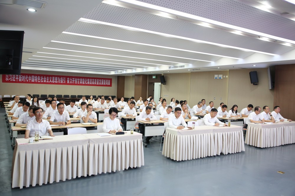 集团公司在家向导谢晓锋、袁崇亮、李洪源出席培训会,集团公司党委副书记、工会主席左冬梅主持。总部全体职工,子公司分担认真人及营业职员加入培训。