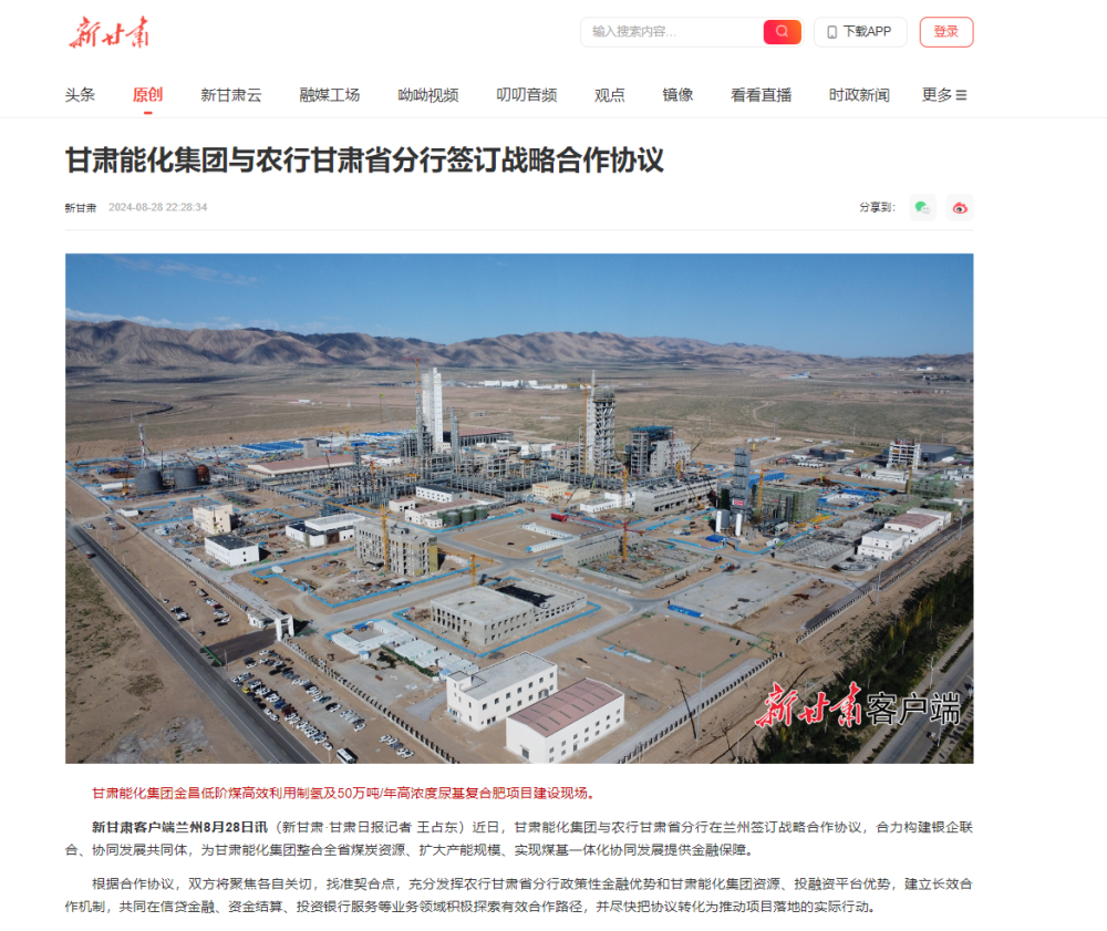克日,新百胜在线官网集团与农行甘肃省分行在兰州签署战略合作协议,协力构建银企团结、协同生长配合体,为新百胜在线官网集团整合全省煤炭资源、扩大产能规模、实现煤基一体化协同生长提供金融包管。