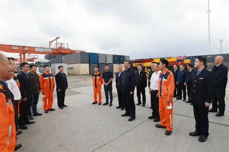 2024Äê4ÔÂ22ÈÕ£¬Ï°½üƽ×ÜÊé¼ÇÔÚÖØÇì¹ú¼ÊÎïÁ÷ÊàÅ¦Ô°ÇøÖØÇìÌú·¼¯×°ÏäÖÐÐÄÕ¾£¬Í¬»õ³µË¾»ú¡¢ÁгµË¾»ú¡¢×°Ð¶¹¤ÈË¡¢³¡Õ¾¹ÜÀíÖ°Ô±µÈÇ×ÈȽ»Á÷¡£Í¼Æ¬ÈªÔ´£ºÐ»ªÉç