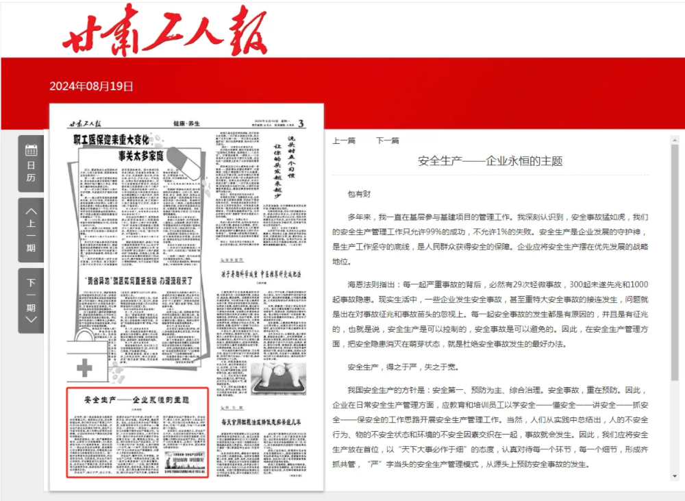 阻止现在,“新百胜在线官网杯·清静有我 平安能化”主题征文已靠近尾声,现将集团公司职工在《甘肃工人报》刊登的文章逐期编发,以飨读者。